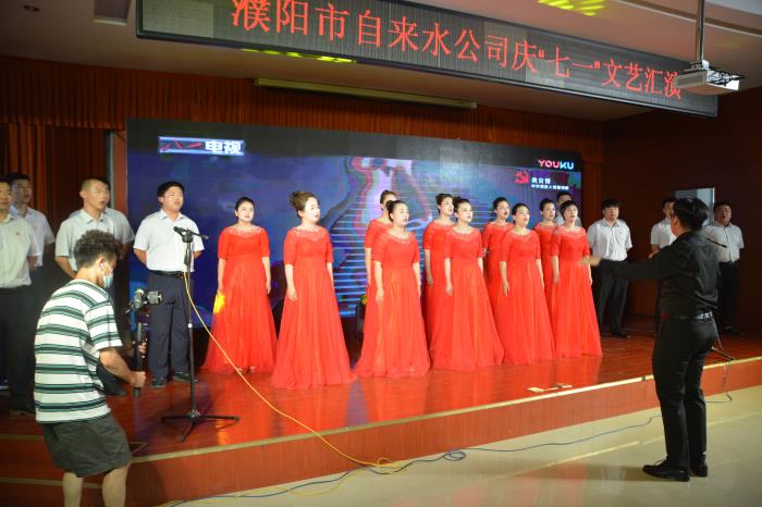 “沒有共產(chǎn)黨就沒有新中國,沒有共產(chǎn)黨就沒有新中國……”6月23日,在中國共產(chǎn)黨百年華誕即將到來之際,市自來水公司慶祝中國共產(chǎn)黨成立100周年職工文藝匯演在機關(guān)大會議室隆重舉行。來自各科室、二級單位的供水職工,用嘹亮的歌聲唱響百年輝煌,用深情的朗誦凝聚奮進力量,用優(yōu)美的音樂傳承紅色基因,用一場人人參與的文藝匯演把黨史學習教育推向高潮引向深入。