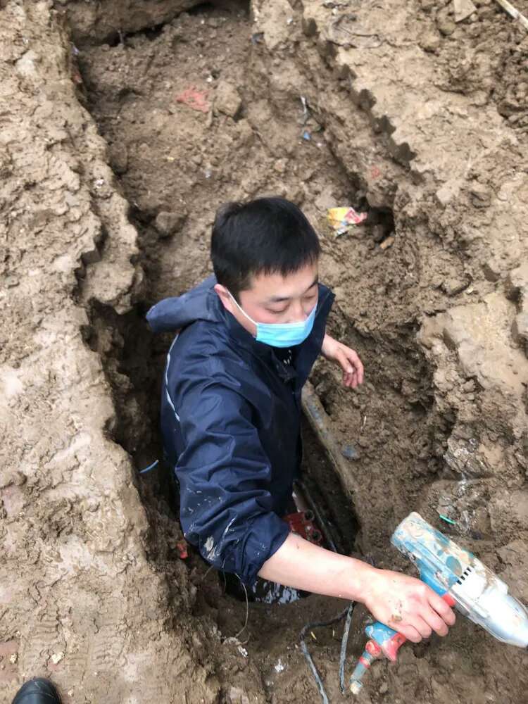 2月14日10時,有群眾來電反映泰和花園小區(qū)自來水冒出,現(xiàn)場水已漫開。險情就是命令,如不及時搶修,將會影響整個小區(qū)居民的生活用水,面對疫情小區(qū),供水人沒有退縮,必須要逆勢而上保供水,在急難險重面前必須把黨組織的戰(zhàn)斗力量頂上去,發(fā)揮黨員“先鋒隊”突擊作用,供水搶修隊員第一時間趕赴小區(qū),對現(xiàn)場進行勘察測漏,制定搶修方案,大家一邊采用人工開挖,一邊緊急協(xié)調挖掘機。經過開挖,發(fā)現(xiàn)漏水由于管道破裂所致,搶修人員立即對破裂管道進行修復,經過5個小時的連續(xù)奮戰(zhàn),終于把破裂管道修復完畢并通水,修復完后,營業(yè)人員又積極通過物業(yè)聯(lián)系回訪該小區(qū)住戶,切實保障居民家中有水。在搶修隊員還沒來得及歇一會的時候,電話突然響起,他們又投入到下一個維修工作中。疫情期間,濮陽市城區(qū)最高日供水量達16萬立方米,完成搶修維修近200起,供水業(yè)務處理及時率達100%;出廠水水質合格率、管網(wǎng)末梢壓力綜合合格率均為100%。