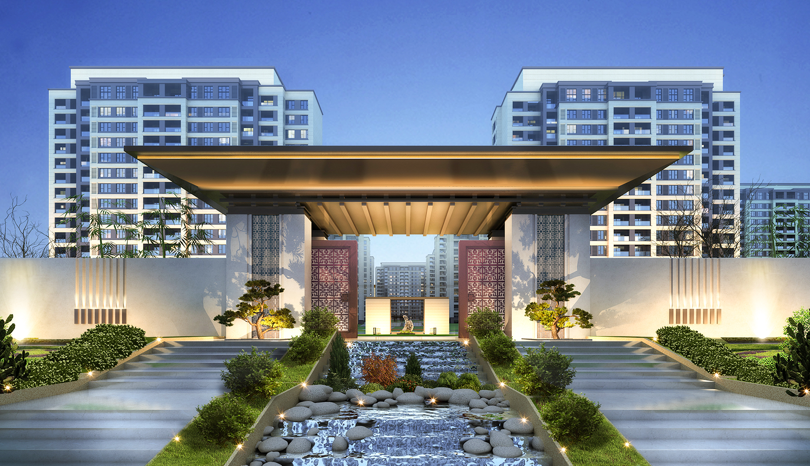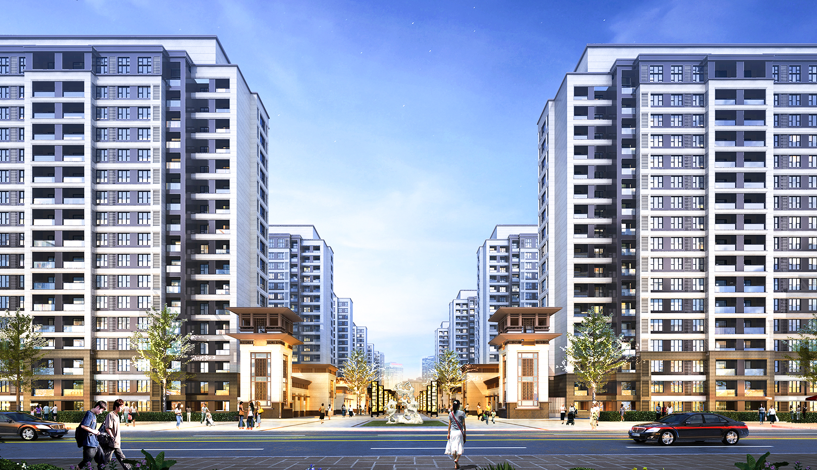 以景觀均好性原則布局住區(qū)景觀、確保各組團(tuán)均享有良好的景觀觀賞空間和公共交流空間。