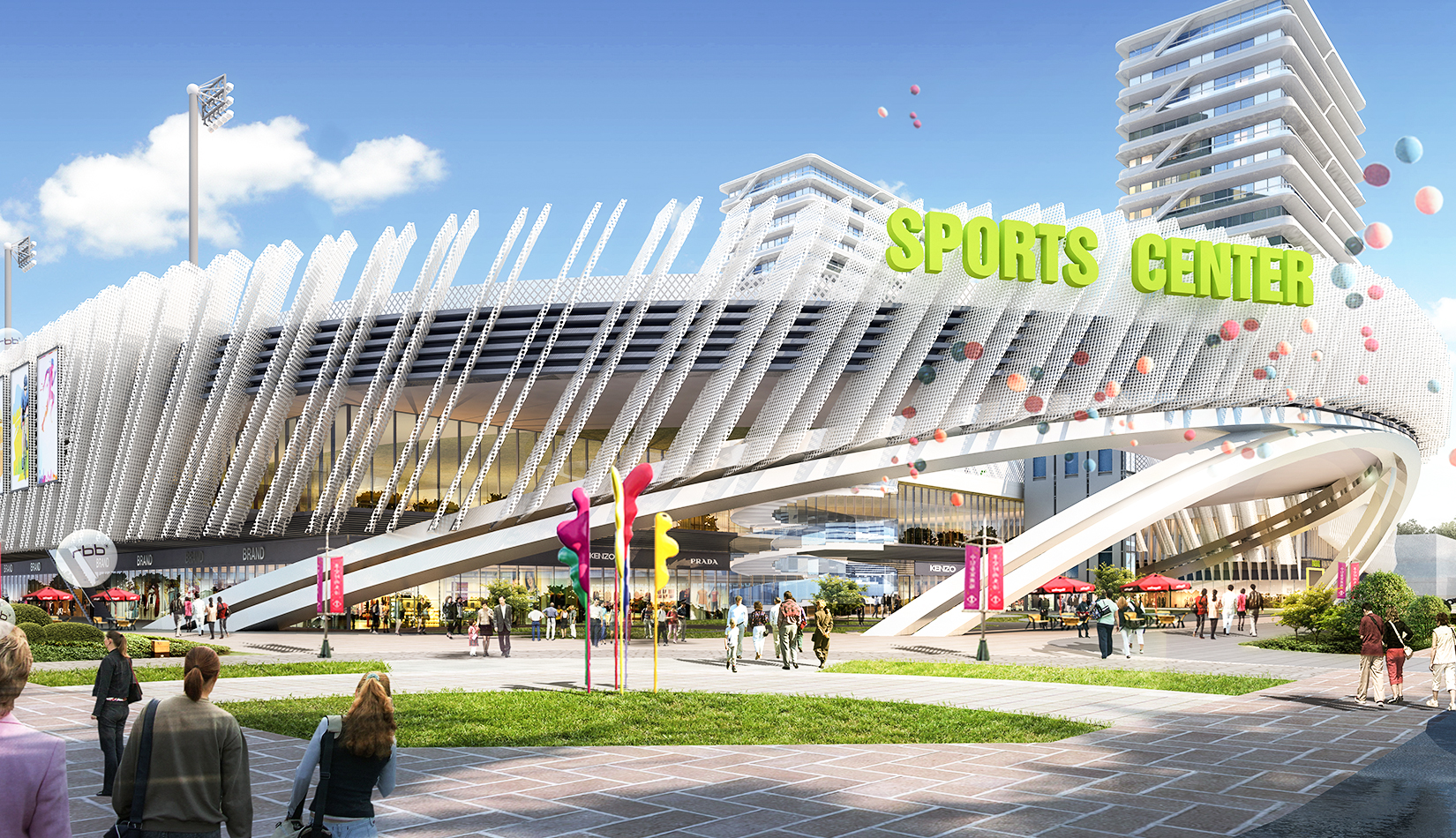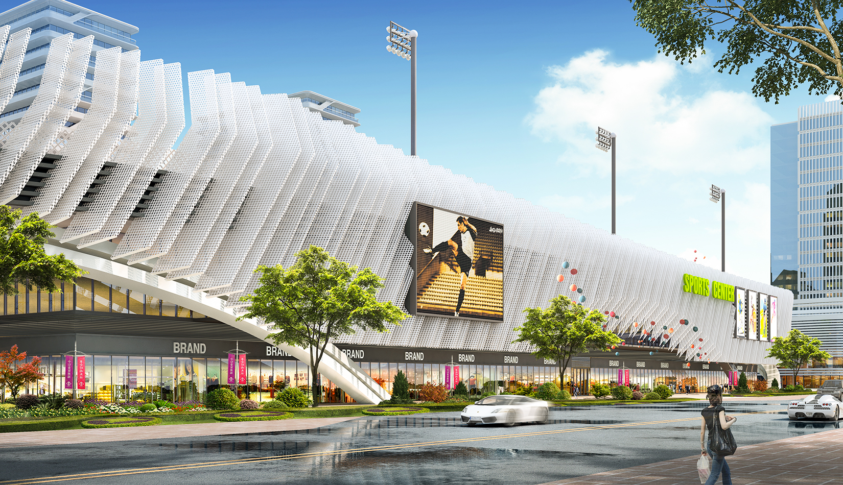 本項(xiàng)目提取高鐵動車和海浪浪花的概念,用白色鋁板陣列與變化塑造出體育綜合體泛著浪花的海洋波浪造型。同時利用動車動感流線的造型設(shè)計(jì)出公寓的整體方案。海浪與動車流線結(jié)合,不僅代表了青島的特色,更是詮釋了積極動感的體育精神。將景觀引入建筑,以景觀打造形象,形成未來綜合體發(fā)展模式。
