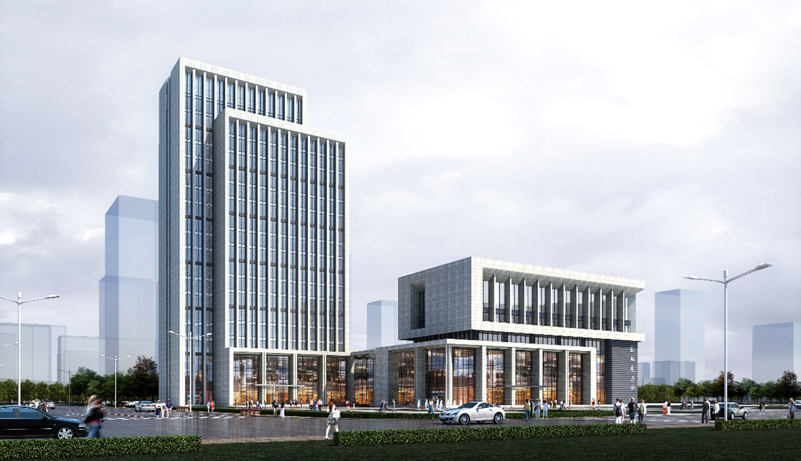 該項目的規(guī)劃布局順應城市空間肌理,十字交叉口處布置景觀廣場形成退讓,避免了對周邊建筑和道路的壓迫感。