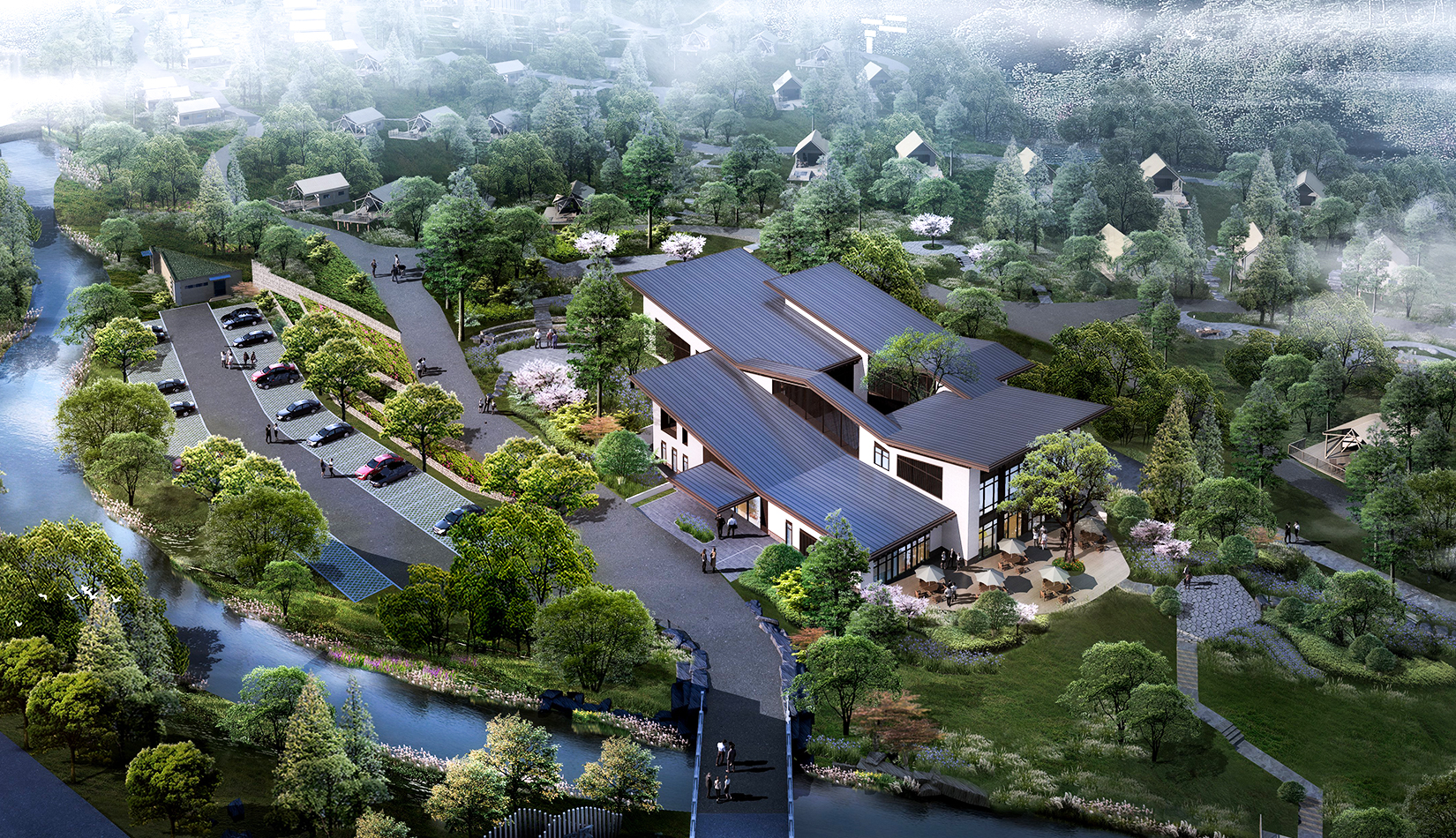 景觀設計從野奢度假酒店的“野”和“奢”兩字入手,融入荒野生態(tài)的設計理念,又要與場地相融合、與原生態(tài)相映、與當地的民俗風情相交匯,突出當地的文化主題,強調高品質的自然、野奢度假,從而打造出一個具備個性與特色,使游客能夠享受到自然野趣體驗的景觀環(huán)境。