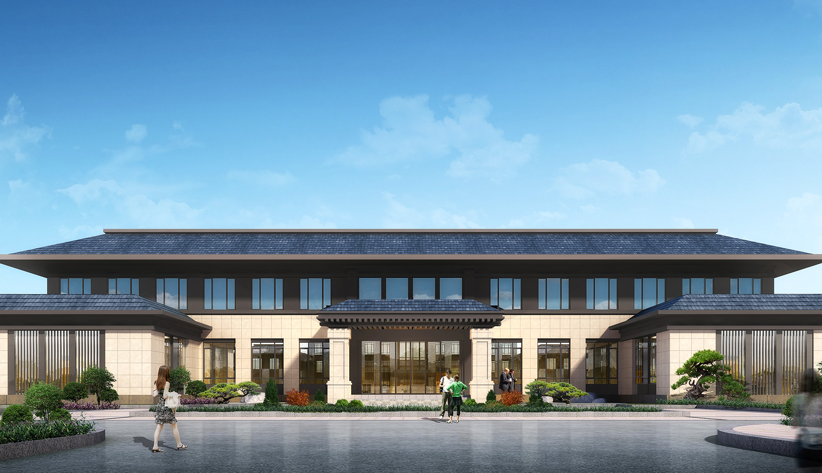 方案融合了儒家文化中“禮為先”的思想,從孔子拱手禮造型中提取抽象曲線加入到建筑的形象中。體現(xiàn)了“有朋自遠(yuǎn)方來,不亦樂乎”的齊魯文化。