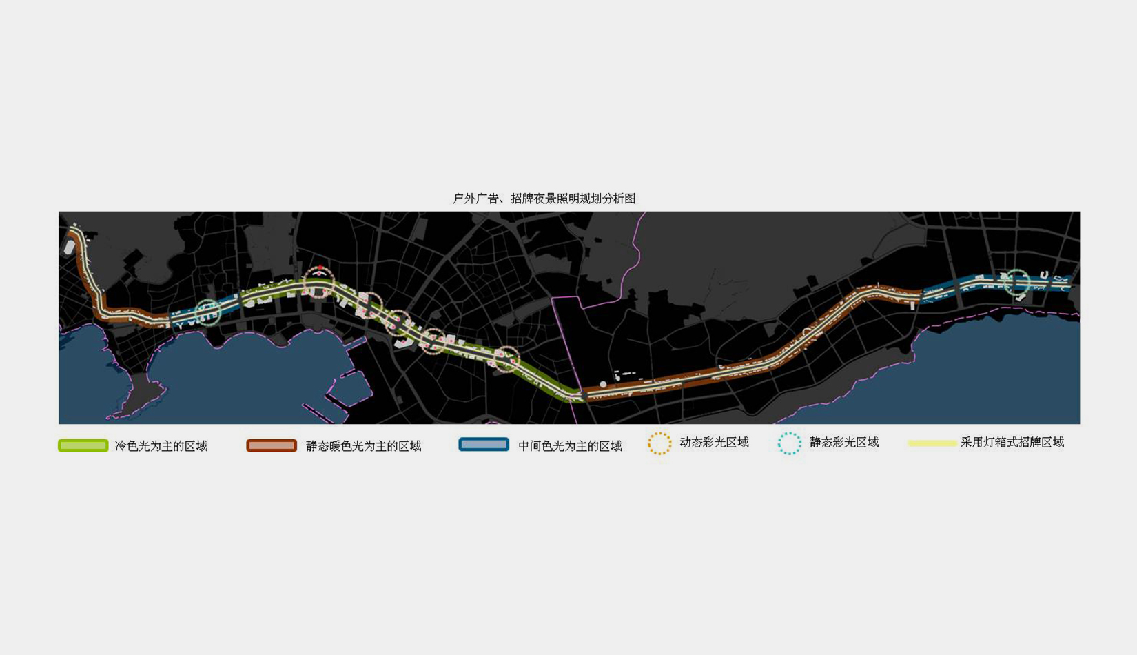 3、指導(dǎo)后續(xù)規(guī)劃實施。確定主干道分區(qū)分段的定位,制定戶外廣告設(shè)施控制細則,示范性提供重要節(jié)點詳細規(guī)劃設(shè)計,指導(dǎo)各行政區(qū)戶外廣告規(guī)劃、整治全面展開。