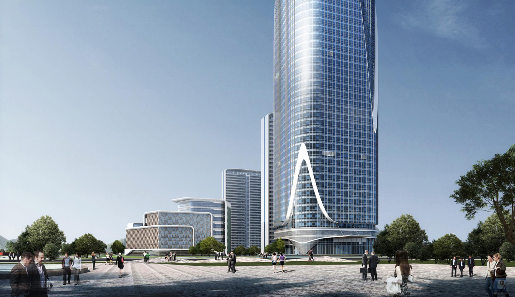 院士港二期1#樓為超高層工程技術(shù)中心,建筑采用現(xiàn)代風(fēng)格立面,以玻璃幕墻為主,利用豎向線條體現(xiàn)高山流水設(shè)計理念。