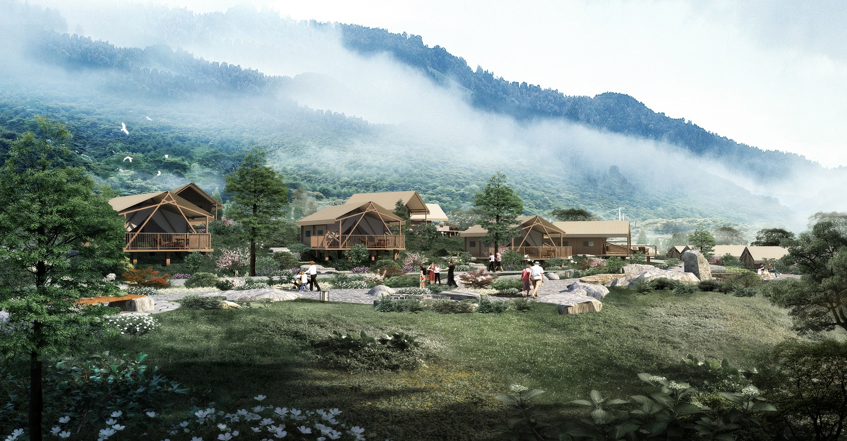 本項(xiàng)目的定位為自然、野奢的景觀風(fēng)格。對(duì)于野奢度假酒店景觀環(huán)境設(shè)計(jì)遵從“野”“奢”兩點(diǎn),融入荒野生態(tài)的設(shè)計(jì)理念,又要與場(chǎng)地相融合、與原生態(tài)相映、與當(dāng)?shù)氐拿袼罪L(fēng)情相交匯,突出當(dāng)?shù)氐奈幕黝},強(qiáng)調(diào)高品質(zhì)的自然、野奢度假,從而打造出一個(gè)具備個(gè)性與特色,使游客能夠享受到自然野趣體驗(yàn)的景觀環(huán)境。